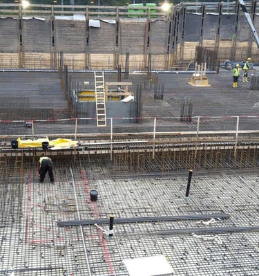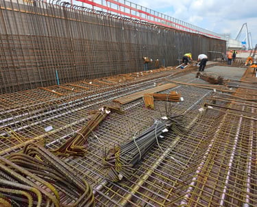 Präzise und sichere Montage von Bewehrungsstahl nach Planvorgaben.