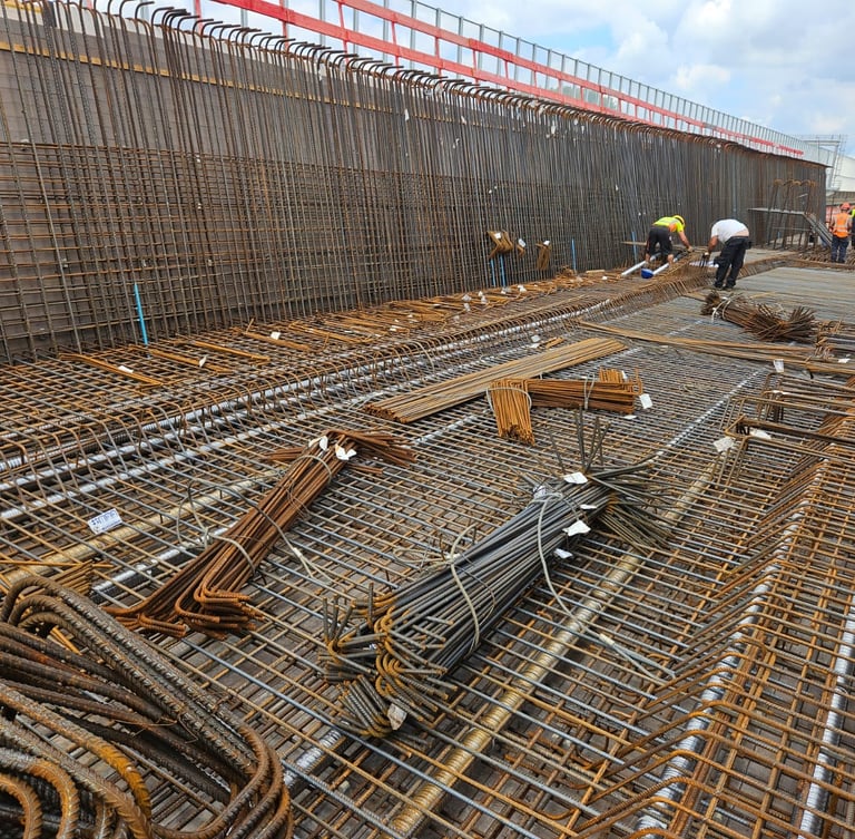 Fachgerechte Verlegung von Betonstahl für Hoch- und Ingenieurbauprojekte, Brücken- und Tunnelbau
